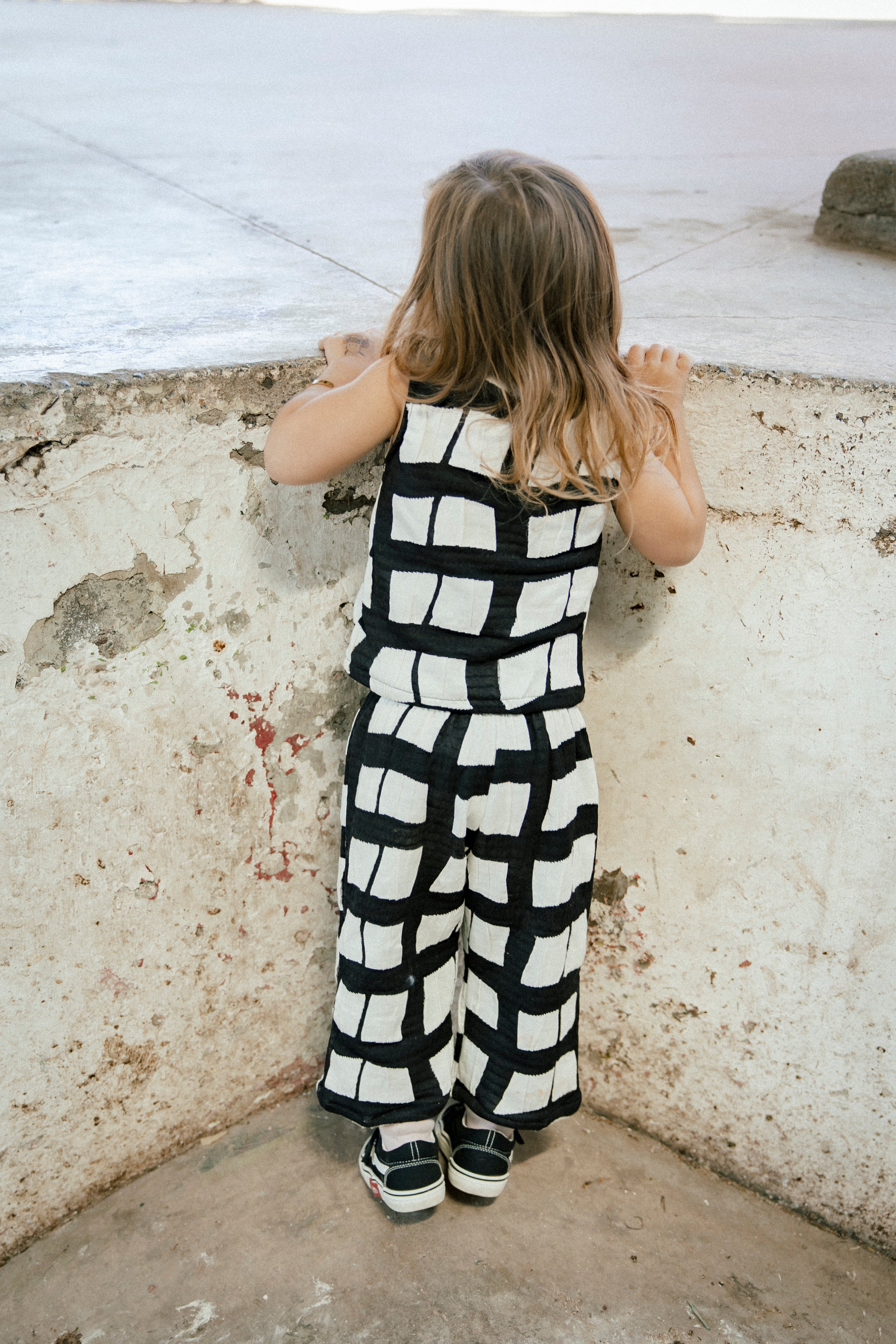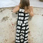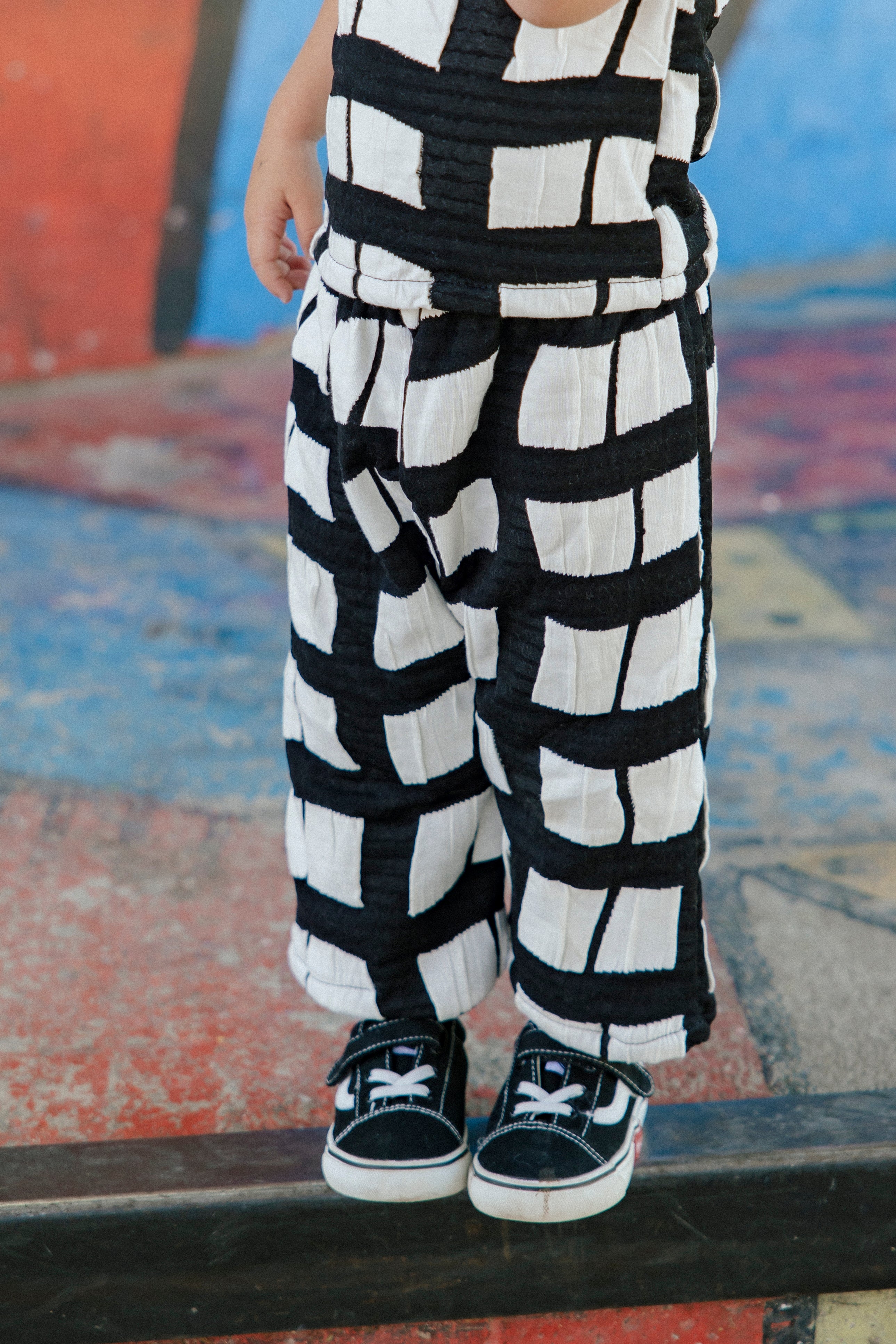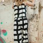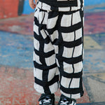 Pantalon holgado de algodón negro con blanco con cintura elasticada.